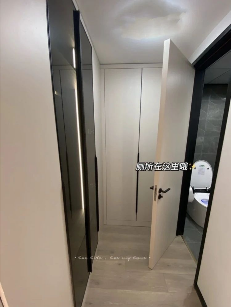 ✅主衛(wèi)寬度<2m,做一字型衣柜,節(jié)省空間。