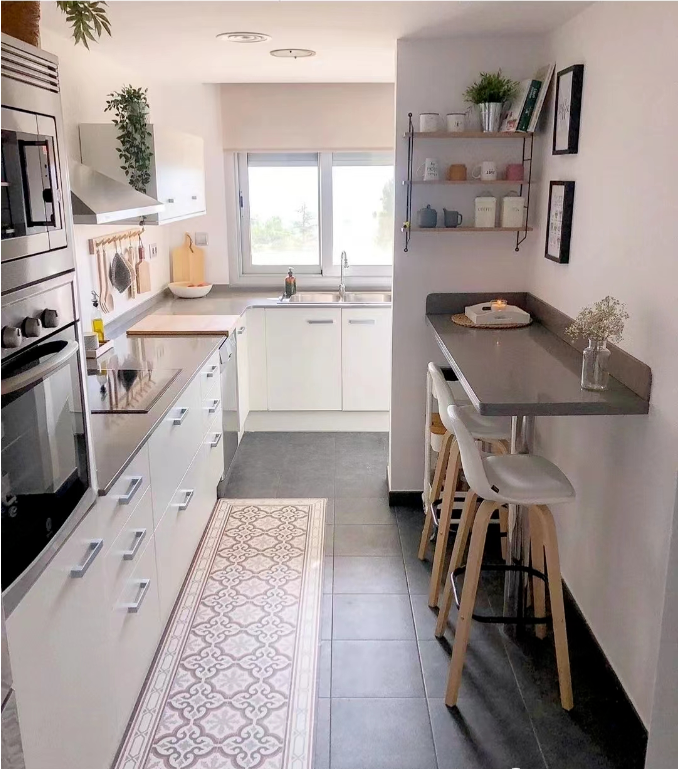 考慮到面積問題,廚房的布局還分為4種,一字型、L型、U型、島臺布局