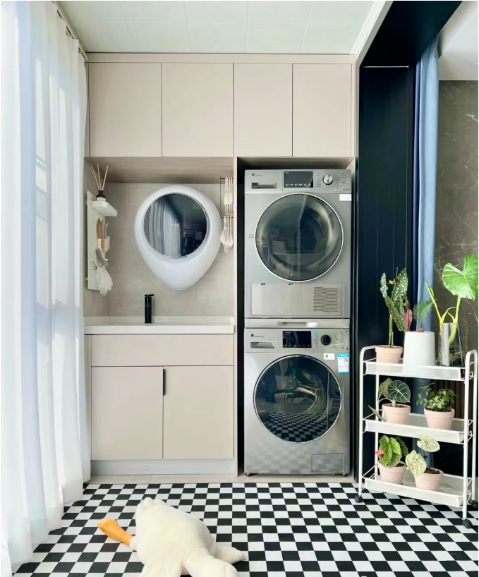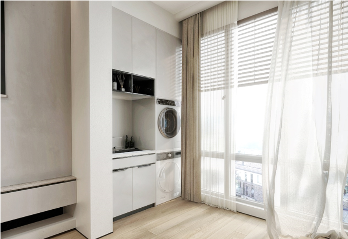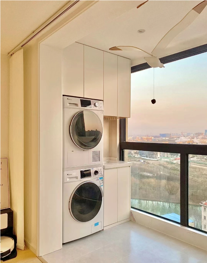 相信大家之前看過不少陽臺改造成書房、休閑區的文章,結果有很多朋友反饋還是做成洗衣房最合適,將陽臺劃分出洗衣區、晾衣區就能一步到位擁有一體化的洗衣房。而且還可以利用陽臺柜的收納做成儲物區,存放一些清潔用品或不用的生活雜物,非常實用~