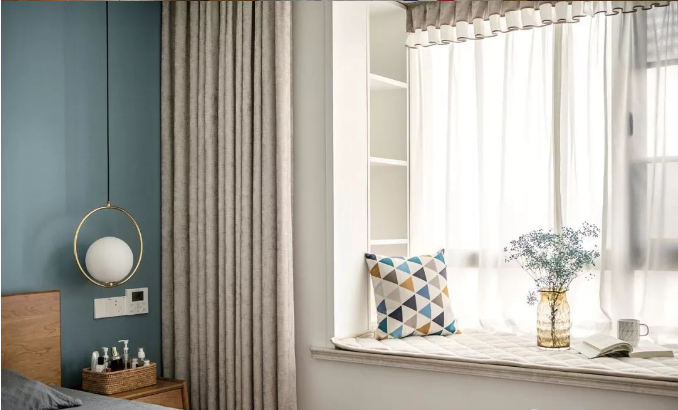 臥室飄窗是一個很好的休閑之處,因為有大面積的玻璃,視野很好,采光也很好,可以在這里靜看窗外風(fēng)景,曬太陽休閑都是不錯的選擇。