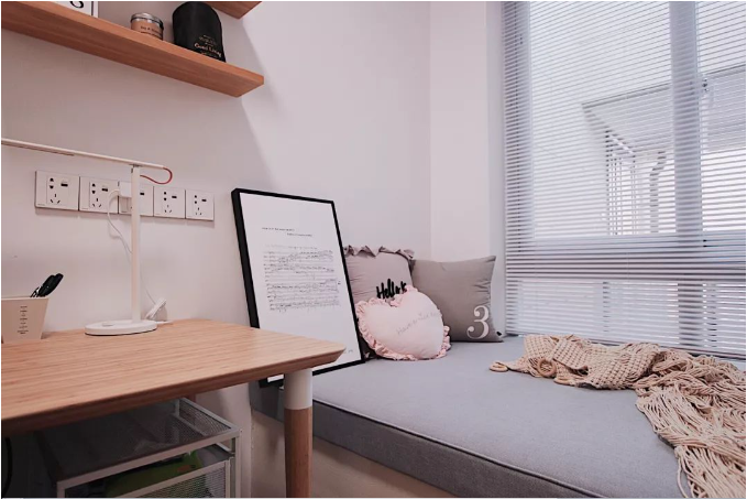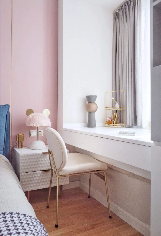 例如,在飄窗上安裝一個簡易的書桌和書架,將其變成一個小型的工作區(qū),還可以結(jié)合梳妝臺功能進行一體設(shè)計。