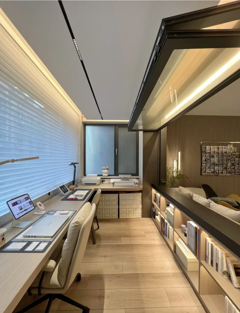空間有限?不妨將陽臺改造成書房吧!利用陽臺良好的采光和開闊的視野,打造一個高效而舒適的工作學習區(qū)域。一張大書桌、一排書架,再加上一扇通透的落地窗,讓靈感與窗外的風景一同流淌。